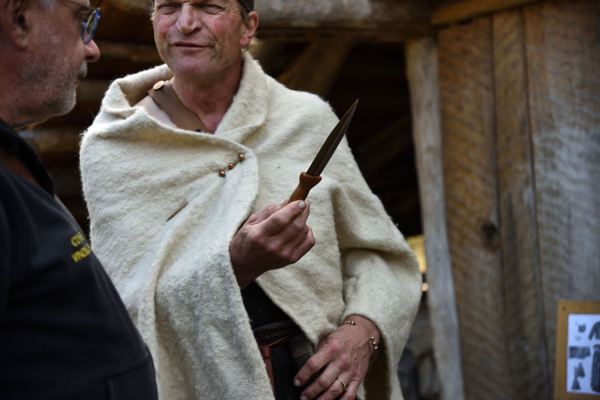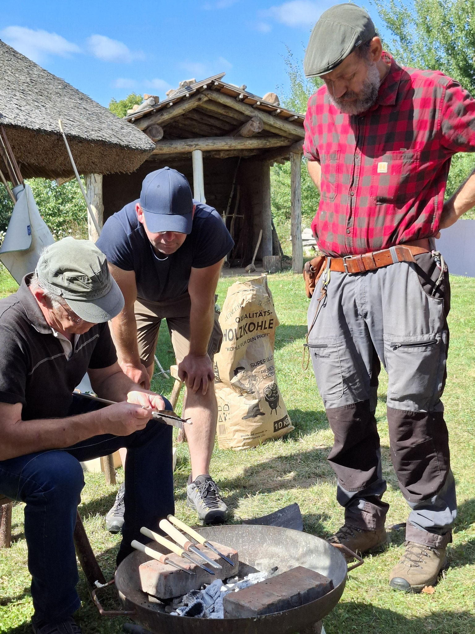 Neben dem praktischen Arbeiten vermittelte Andreas Benke reiches Hintergrundwissen: Welche Materlialien standen in verschiedenen Epochen zur Verfügung? Wie unterscheiden sich Pfeile aus der Steinzeit von solchen der Eisenzeit? Durch sein Fachwissen und seine anschauliche Art wurde Geschichte zum Greifen nah.