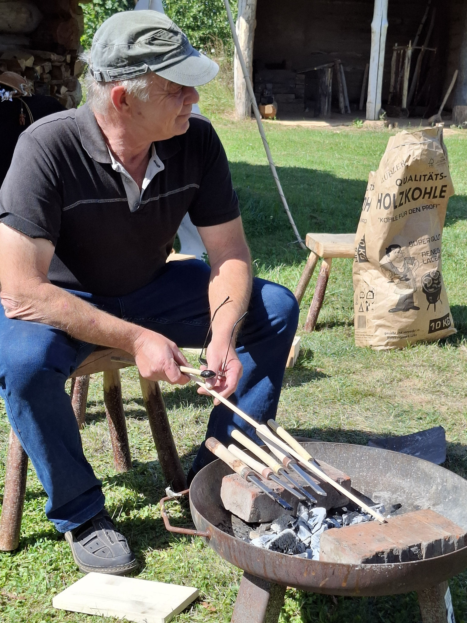 Ein besonderes Highlight war der Einsatz von Birkenpech als Klebstoff - eine Technik, die bereits unsere Vorfahren kannten und meisterhaft nutzten. Schritt für Schritt entstanden so Pfeile, die nicht nur funktional, sondern auch kleine Kunstwerke sind.
